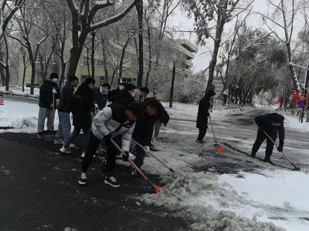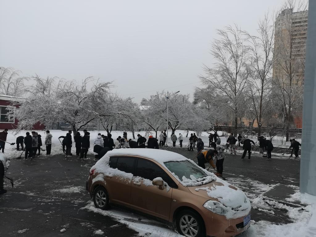 为及时铲除冰雪,消除安全隐患,优化出行环境,11月9日上午,学院全体政工干部对学院楼周围及卫生责任段进行道路积冰积雪清理,百余名学生参与其中,有开展志愿服务的党员,也有参加公益劳动的学生,大家不畏严寒,干劲十足,斗志昂扬,将劳动教育课堂贯穿了到日常生活之中。