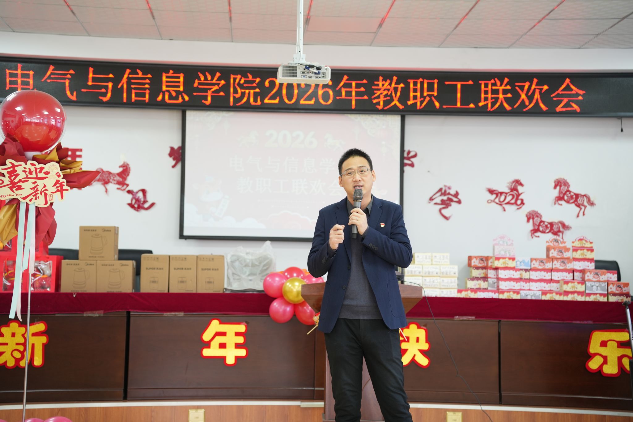 学院行政负责人戴百生送上新年致辞,他回顾了过去一年学院在党建引领、教学科研、人才培养、社会服务等领域取得的丰硕成果,尤其是在人工智能与电气工程、信息工程交叉融合中取得的突破性进展,向全体教职工的辛勤付出致以诚挚感谢,希望在新的一年里,持续以人工智能技术为抓手,保持定力、发挥活力、激发动力、再创战力,以凝心聚力的姿态书写学院发展新答卷。