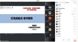 教师党支部读书分享主题党日活动中。党政办公室党支部白蕙箐分享了《可爱的中国》:“爱国”不是一个概念,也不是一句口号,而是我们炎黄子孙们一腔热血中流淌的信念,尽管时代变迁,但爱国永不过时。电气工程系党支部陈月华分享了《觉醒年代》:书中有许多英雄,如李大钊、邓中夏、蔡和森等,他们都是志存高远、才华横溢的精英,为了追求真理,为了拯救中国,不惜慷慨赴死、从容就义,他们理应成为今天青年的偶像。物联网工程系党支部宋伟先分享了《林海雪原》:没有经历那个红色年代的我,从中更是得到了很多精神层面的补充以及进步,英雄的时代已经逝去,但他们的精神品质却不会随着时间的流逝而消散。计算机系党支部赵振庆分享了《红色的起点》:尽管形势发展变幻莫测,但我们坚信以习近平总书记为核心的党中央一定能够带领我们闯激流,绕险滩,实现伟大胜利。计算机基础部党支部郭玉环分享了《苦难辉煌》如果说苦难来源于物质的困境和探寻的艰难,那么辉煌则来源于精神的强大和追求的实践,要勿忘昨天的苦难辉煌,无愧今天的使命担当,不负明天的伟大梦想。农业电气化系党支部黄博妍分享了《闪闪的红星》:作为高校教师,肩负着教导引领一代一代祖国未来的青年学生们的神圣使命,要将家国情怀更好的融入到教学与科研中去,让闪闪的红星照亮孩子的成长之路。各位教师党员同志的精彩分享,跨越了不同历史时期,多角度讲述了中国共产党筚路蓝缕的革命故事,共同探讨了红色精神,深入挖掘了红色经典书籍背后的初心和使命,让与会人员深受启发,接受了再次教育。