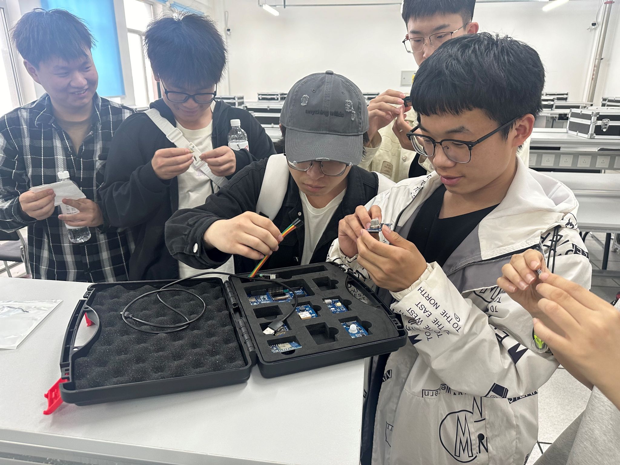 学生动手操作物联网实验设备。