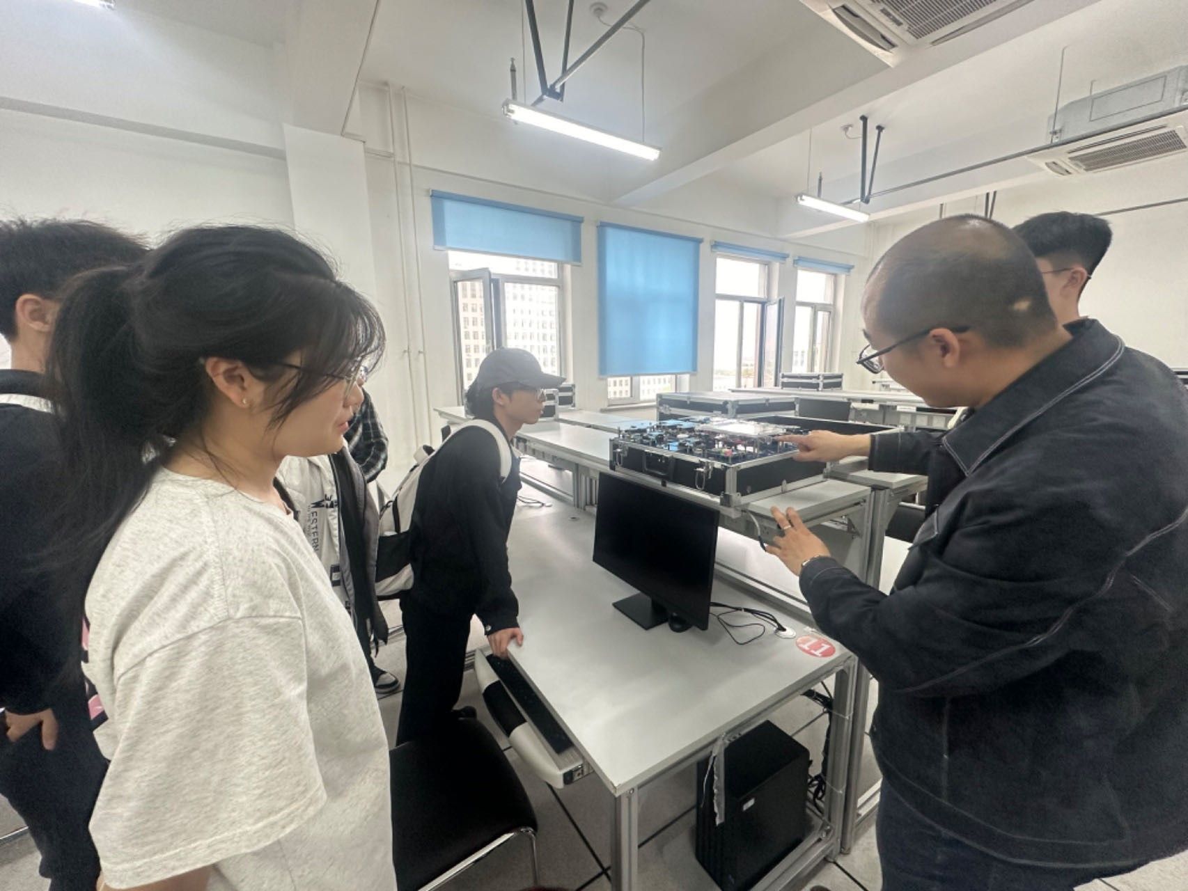张宇为学生讲解物联网相关设备。