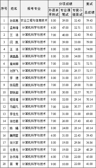 本次参加面试考生共21名,其成绩公示如下: