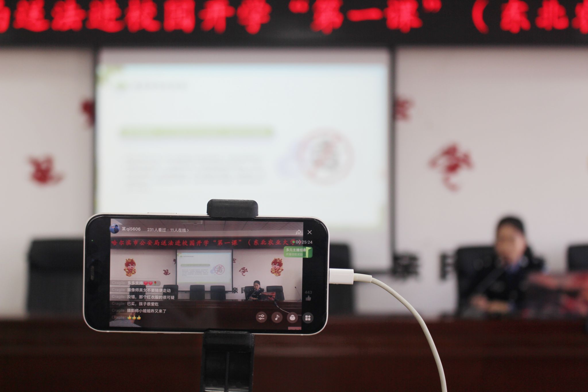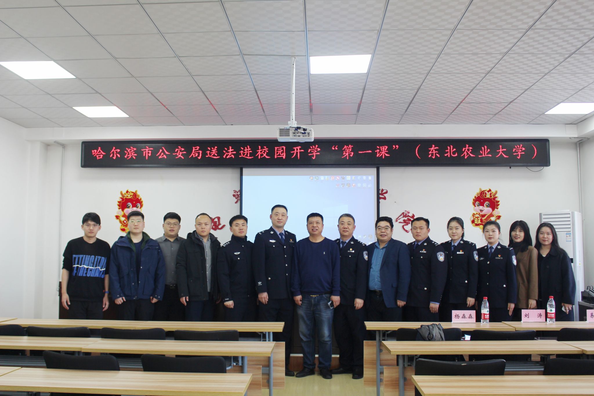 本次活动同时作为哈尔滨市公安局送法进校园活动系列活动之一,由哈尔滨市公安局公交分局松江生态园站派出所刘涛所长和公交分局政治处宣传副主任潘宇带队来到东农校园,公交分局松江生态园站派出副所长倪鸿皓、法治员任纪宝、市公安局禁毒支队三级警司李雨璠为学院师生做了三场精彩报告。