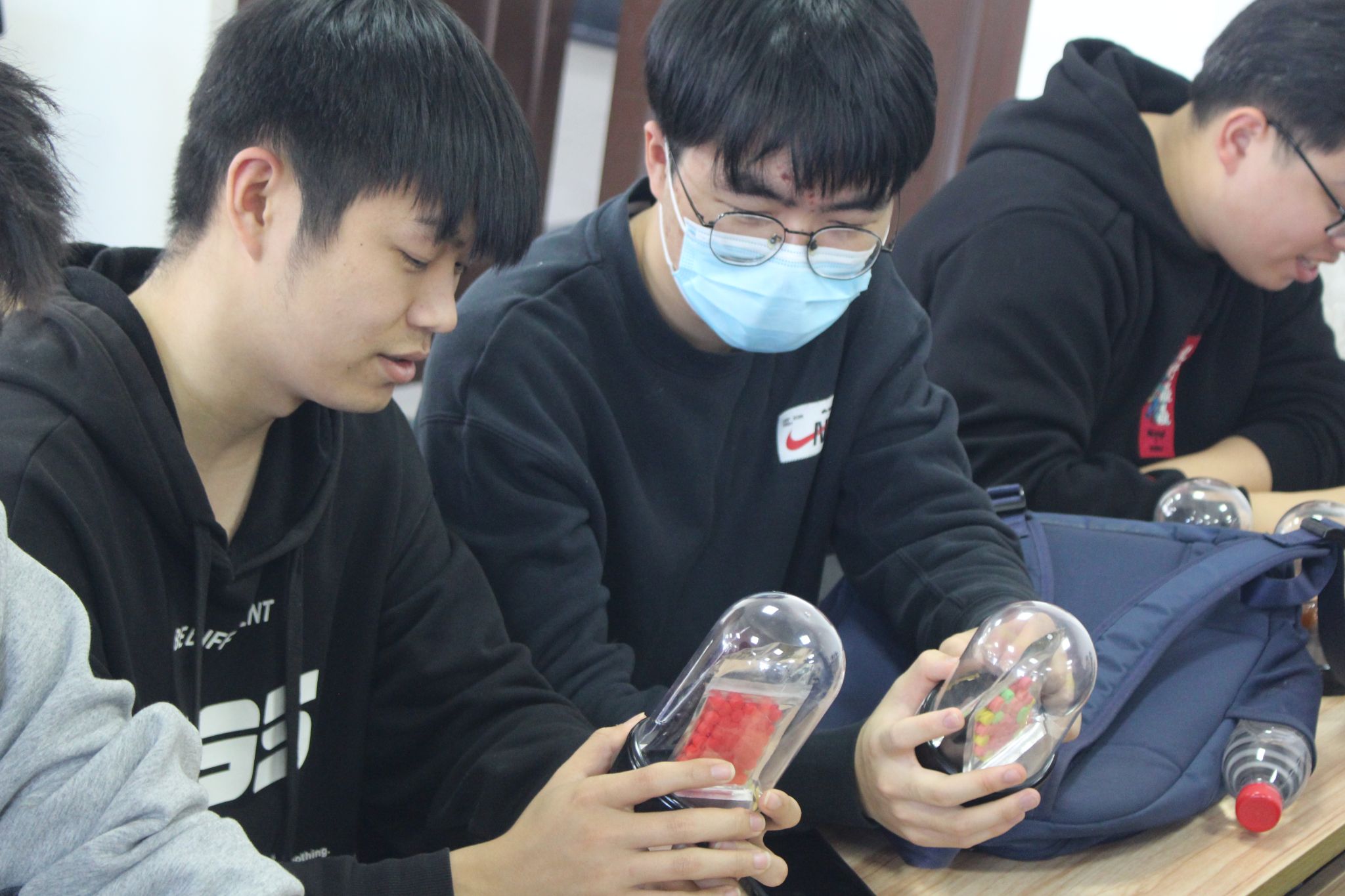 学生现场观看仿真毒品