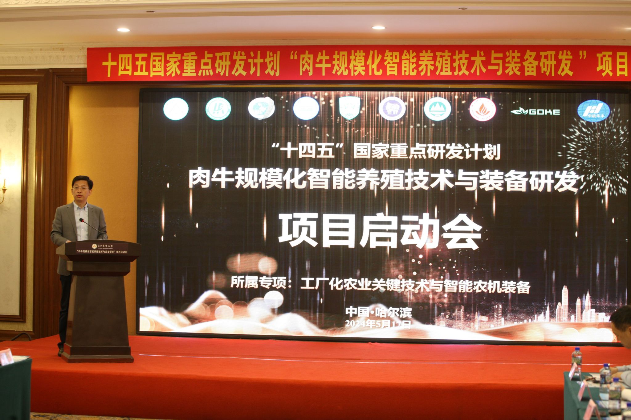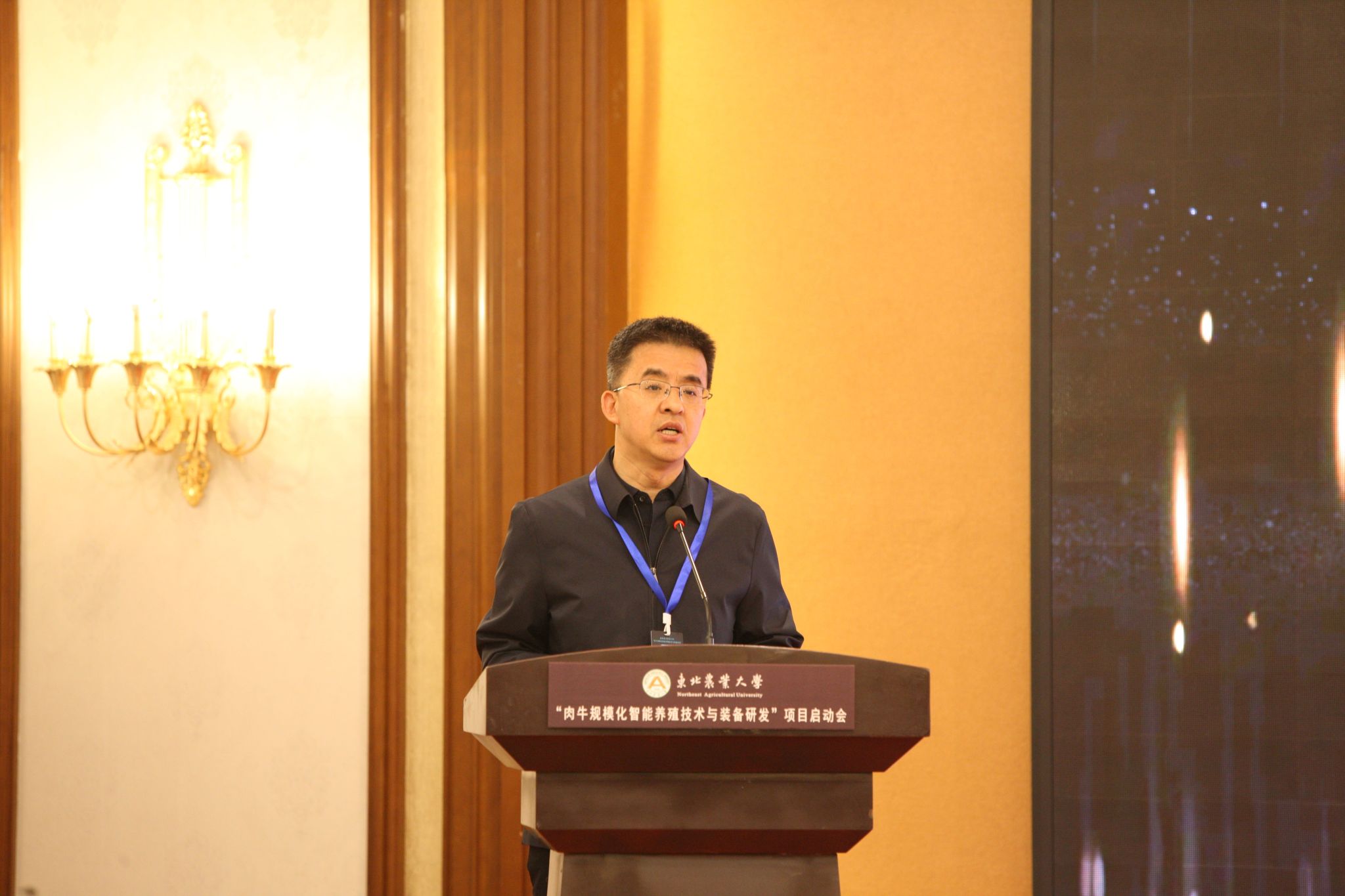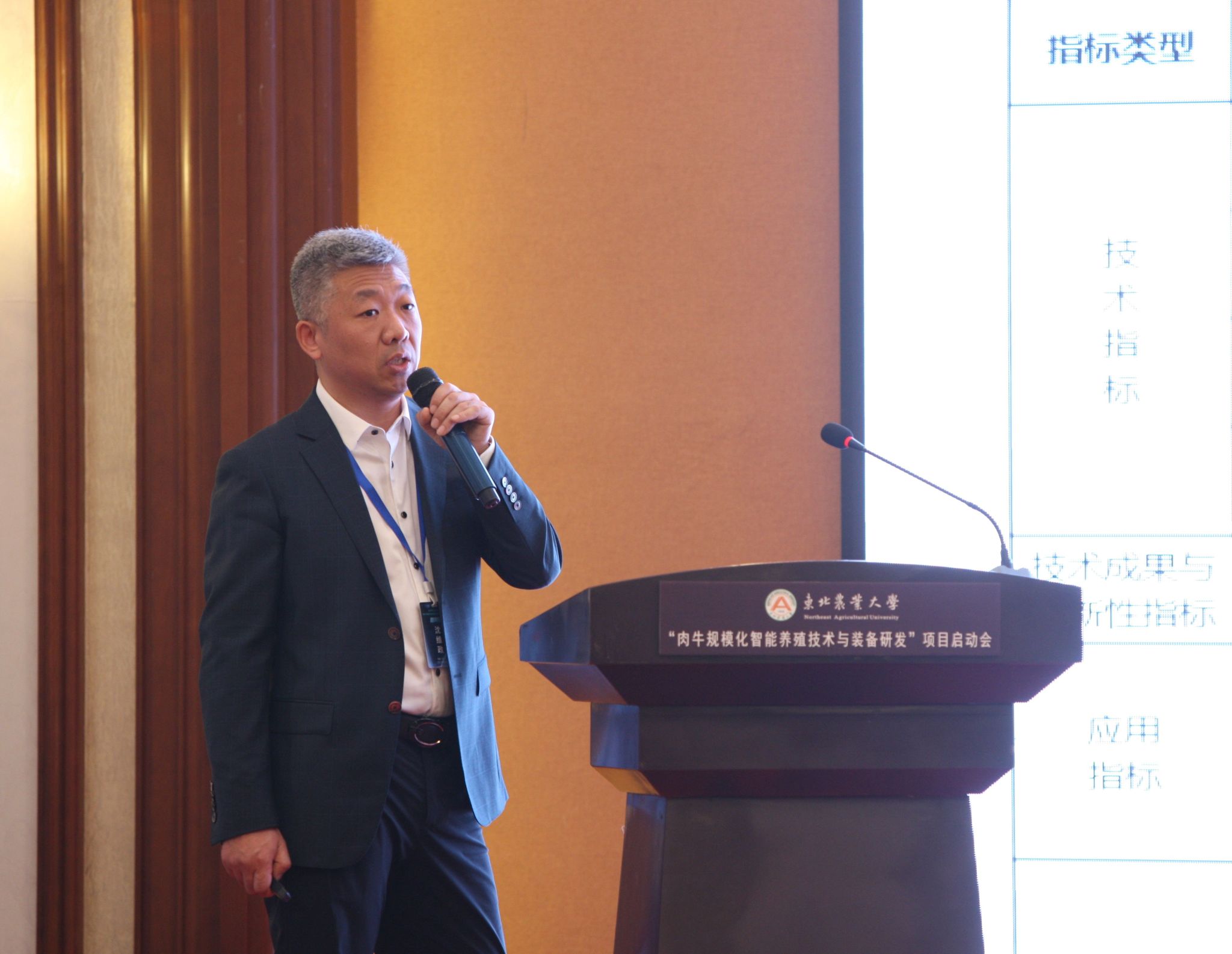 刘竹青对与会领导、专家和项目组成员的到来表示热烈欢迎,对大家长期以来给予东北农业大学的关心和支持表示感谢,对项目的顺利启动表示祝贺。刘竹青介绍了我校“十四五”以来承担国家重点研发计划项目情况。他指出,肉牛养殖业是我国现代农业的重要支柱产业,也是黑龙江省大力发展和重点支持的产业之一。而该项目的实施将有力推动肉牛产业高质量发展,同时,有助于促进我校农业工程学科的提档升级。他表示,作为项目牵头单位,学校将加强项目日常管理与服务,为项目顺利实施提供条件保障。并希望在下一步的执行过程中,项目团队及各课题组能够以高度负责的态度和高效协同的精神,确保项目高质量、高标准地完成,为我国肉牛养殖产业转型升级起到积极的推动作用。