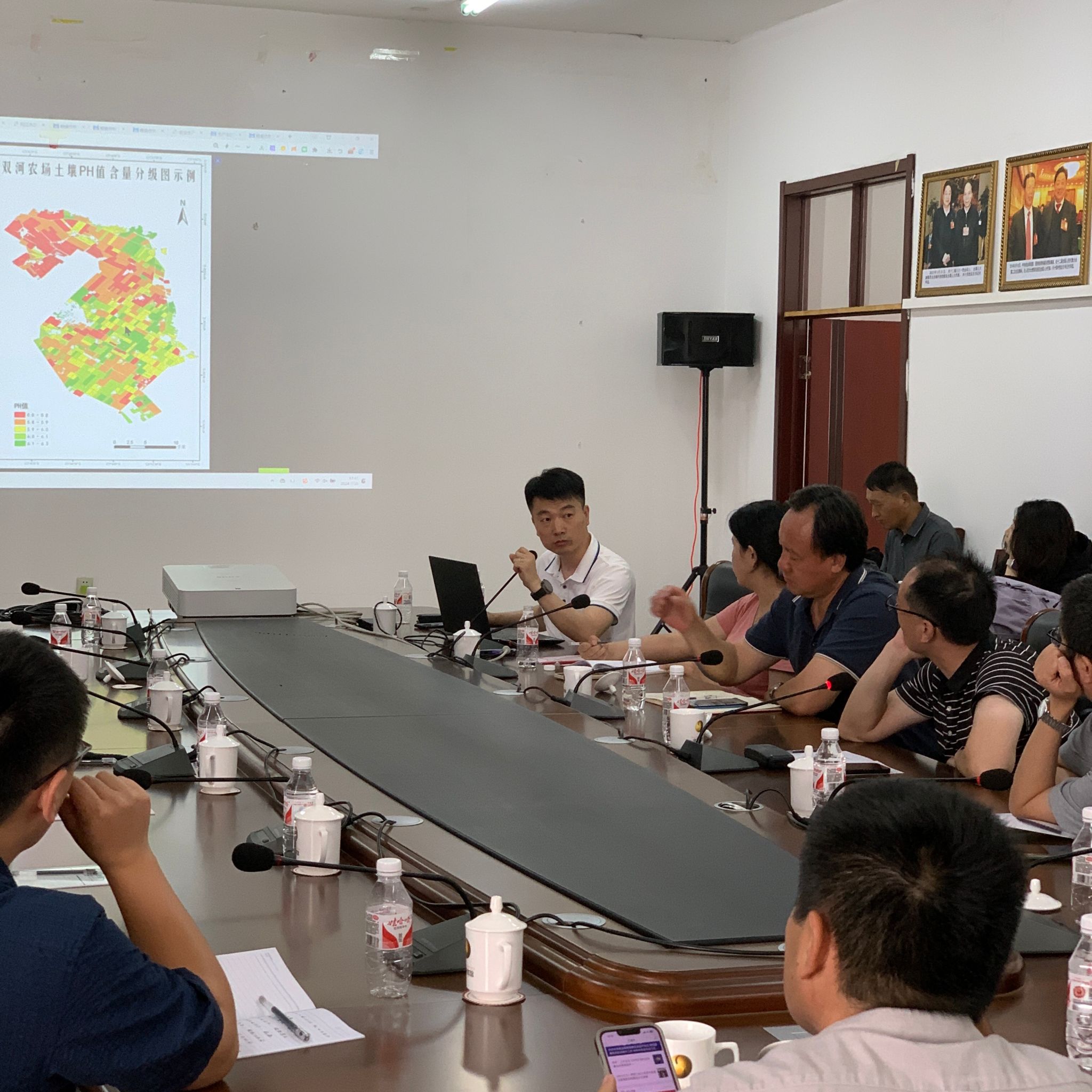 现场观摩结束后,项目组召开了座谈会议,会议由孔庆明主持,孔庆明首先代表我院智慧种植团队对与会的各位专家表示热烈的欢迎,并围绕课题研究背景、研究目的与意义、前期工作基础、应用示范开展情况等向专家组介绍应用示范区的课题开展情况,团队成员于春雷介绍了双河农场智慧农业大数据管理平台。在听取示范区基本情况介绍后,项目负责人田永超教授表示双河农场具有较好的水稻种植区位优势,希望下一步工作中各课题团队做好技术对接,完善联合试验,重点围绕智慧农场技术模式开展相应工作,突出规模化落地应用,形成产业化生产模式与共性技术体系,服务现代农业发展。