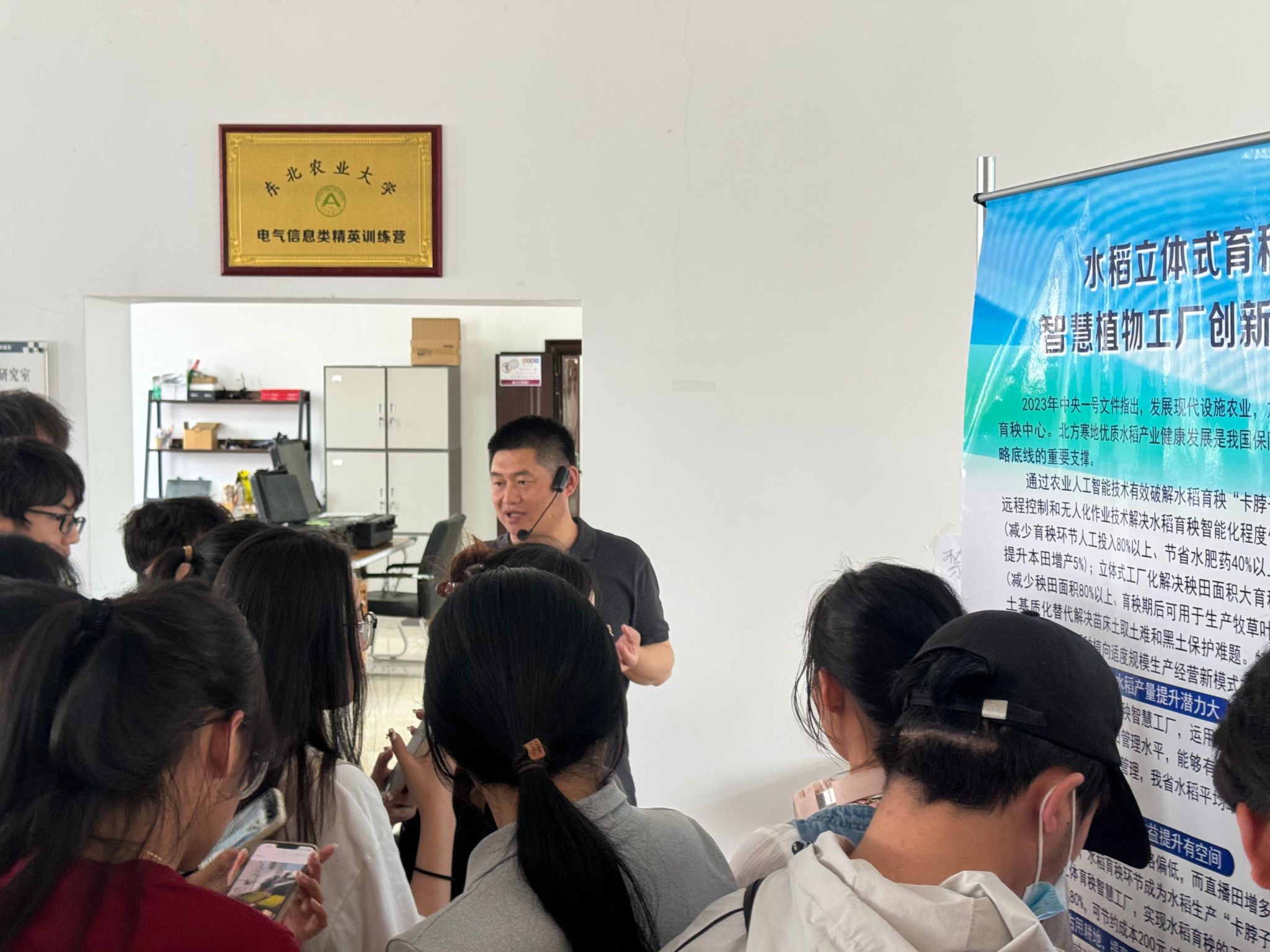 7月4日,师生一行参观了农业农村部东北智慧农业技术重点实验室,专业教师以生动详尽的讲解引领学生前行,通过互动式交流激发学生的探索欲。学生们不仅近距离接触了智慧农业的前沿技术与最新研究成果,更深刻领悟到其在现代大农业中的核心地位。实验室内,水稻立体育秧智慧植物工厂的创新实验平台及琳琅满目的高精尖设备,无不彰显着智慧农业的无限潜力与魅力。智慧农业以其高效的生产模式,有效促进了农业资源的优化配置,减少浪费,同时依托精准管理与科学决策,实现了农产品产量与质量的双重飞跃。这一系列的变革,为构筑国家粮食安全防线提供了坚实的技术支撑与保障,这让学生们对未来农业的发展充满了信心与期待。