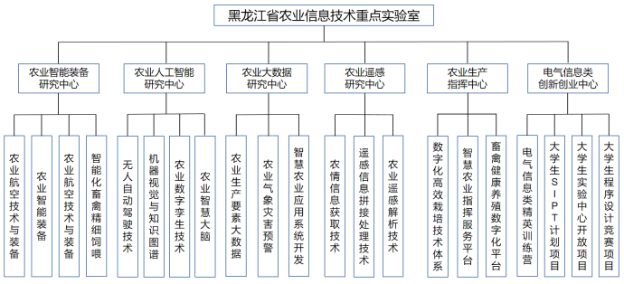 黑龙江省农业信息技术重点实验室于2017年获省科技厅批准建立,旨在结合国家及我省的中长期科技发展战略,直面龙江农业及畜牧业领域发展中的痛点与难点,充分发挥以东北农业大学为主要依托的农科资源优势,着力推进信息技术在农业领域的融合力度,瞄准农业信息技术领域的前沿重大科学技术问题,取得标志性原创成果,致力于服务“三农”并有效推动地方经济建设。集科研、教学、双创、服务于一体,努力将其打造成我省充分体现智能化、信息化、机械化的人才培养基地,营造产学研用深度融合的生态环境,实现产业聚集、人才聚集效应,激发农业装备智能制造、农业信息技术人才创新与创业活力,促进企业、人才成为新兴产业发展的源动力,发挥新工科、新农科在“高教强省”战略中的主导作用,助力我省新技术、新业态、新模式加快发展和产业结构优化升级,通过农业信息技术创新驱动,加快黑龙江省农业现代化建设的战略步伐。