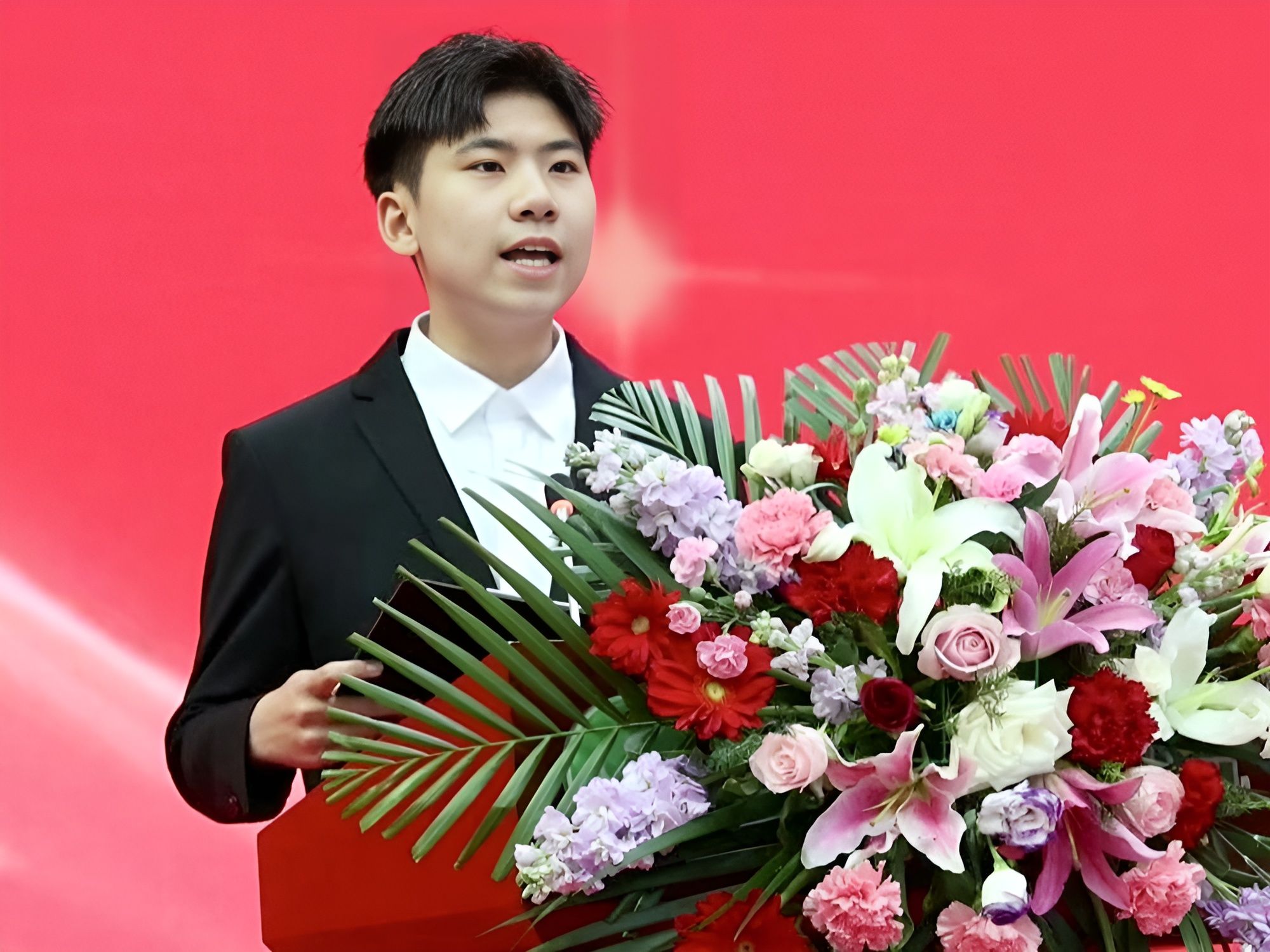 研究生代表、国家奖学金获得者王浩发言,他从自身科研学习和成长成才经历出发,分享感悟,表达了对学校和老师培养的感谢,表达了作为新时代大学生应厚植家国情怀、担当时代重任的心声。