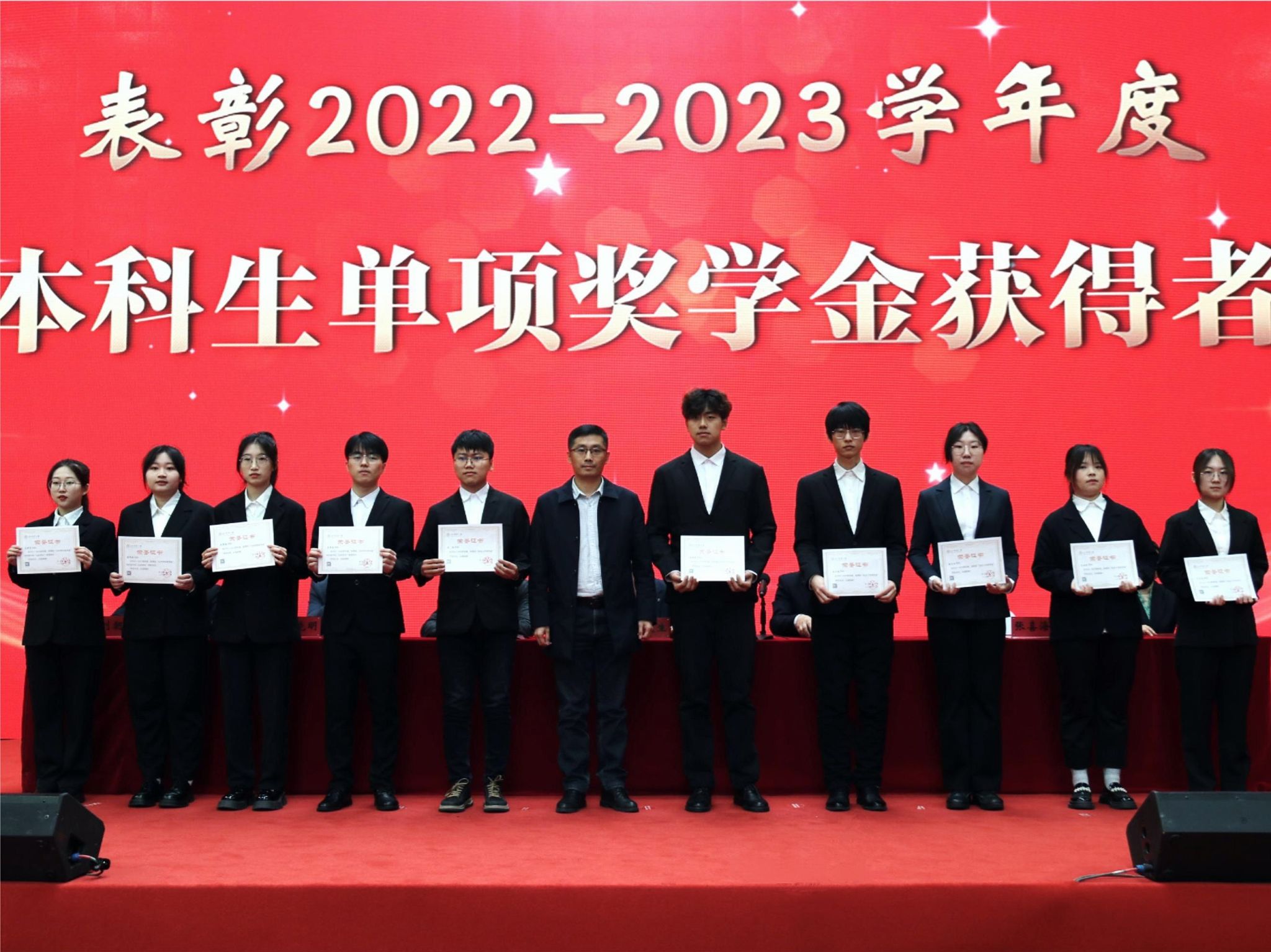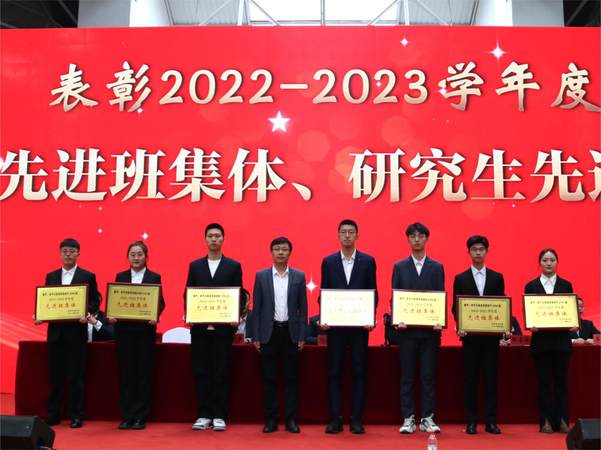 太阳成集团tyc71112023年共有4名本科生、2名硕士研究生获得国家奖学金;99名本科生获得国家励志奖学金;63名本科生、研究生获得黑龙江省“三好学生”荣誉称号;492人次获得学校本科生单项奖学金、8人次获得学校优秀研究生、优秀研究生干部;1人次获得学校大学生年度人物;7个班级获得学校本科生、研究生先进班集体。获奖学生代表依次上台领奖。