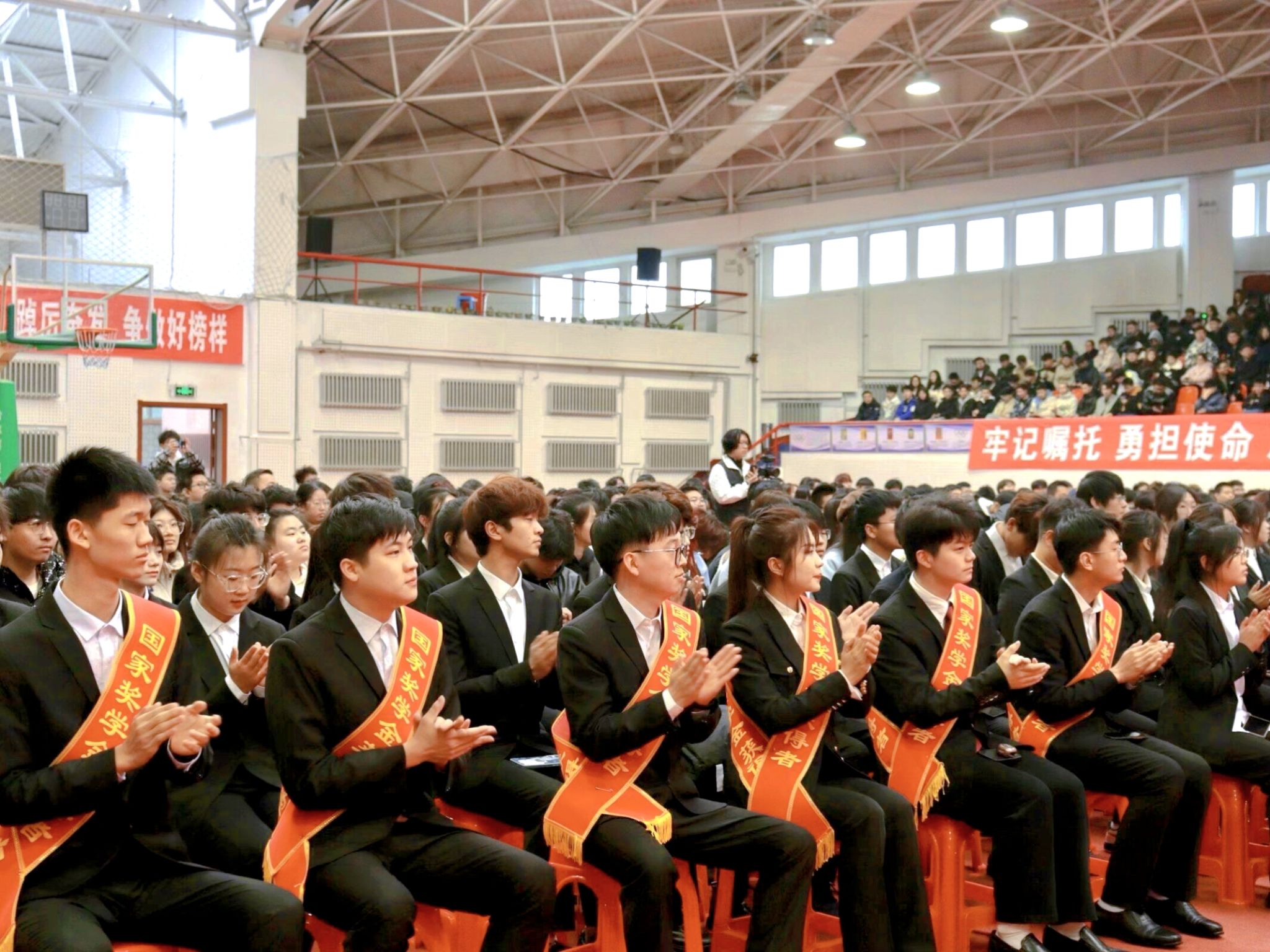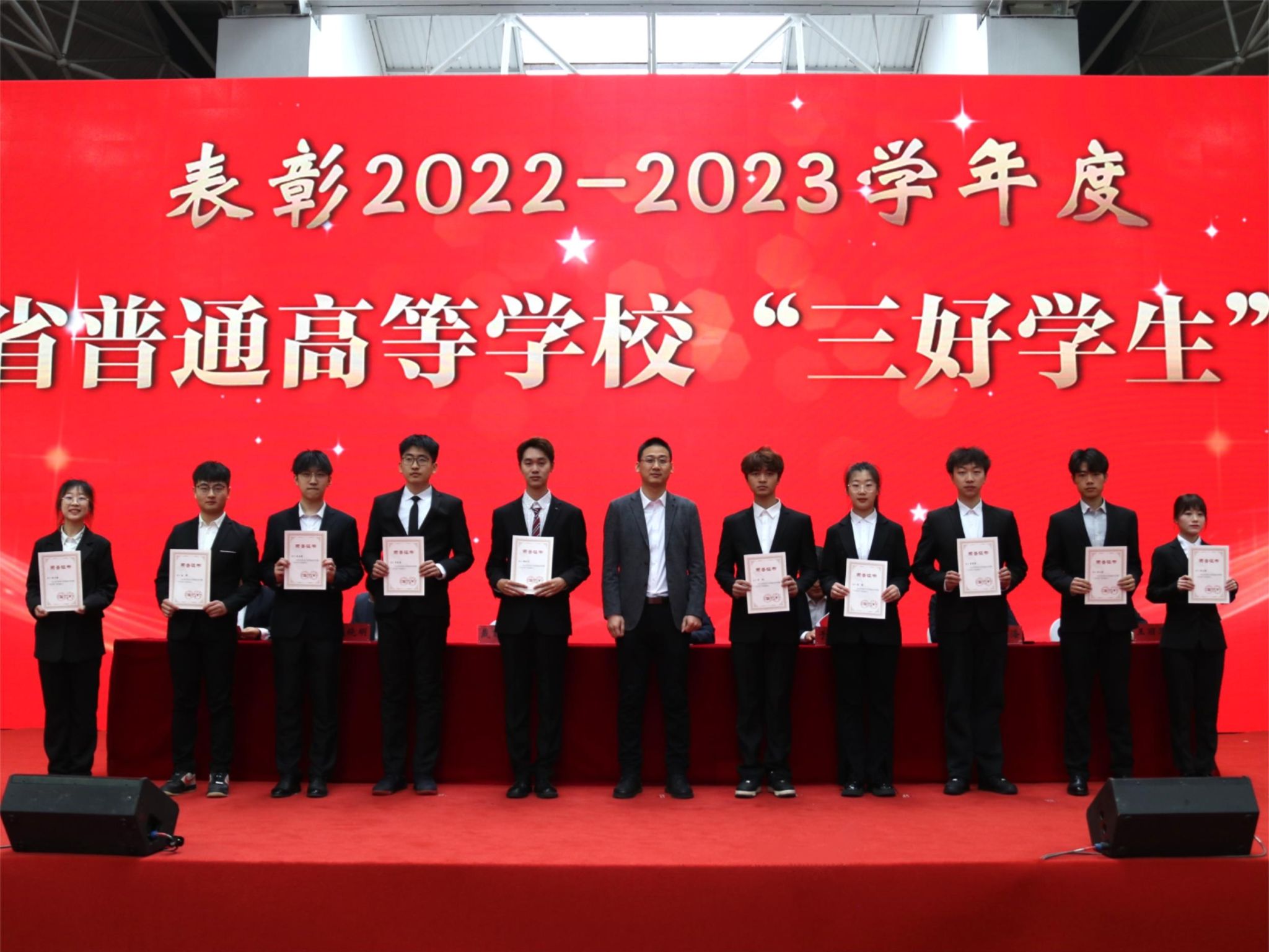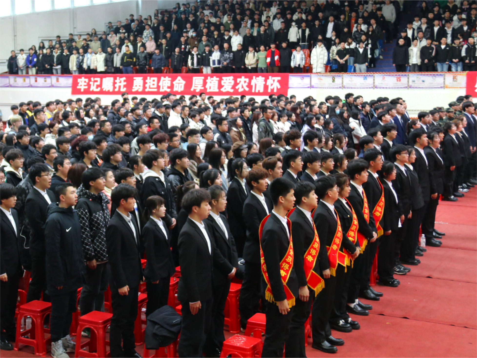 3月23日,“榜样耀青春,奋斗正当时”太阳成集团tyc71112022-2023学年度学生先进集体、优秀学生表彰大会在东北农业大学体育馆举行。学工处处长于兴业、学院党委书记万庆生、学院行政负责人戴百生、副院长张喜海、副院长李晓明、副处级辅导员王丽萍、刘朝阳,教师代表、学院全体辅导员及全体本科生、研究生参加会议。大会由学院党委副书记汪文斌主持。