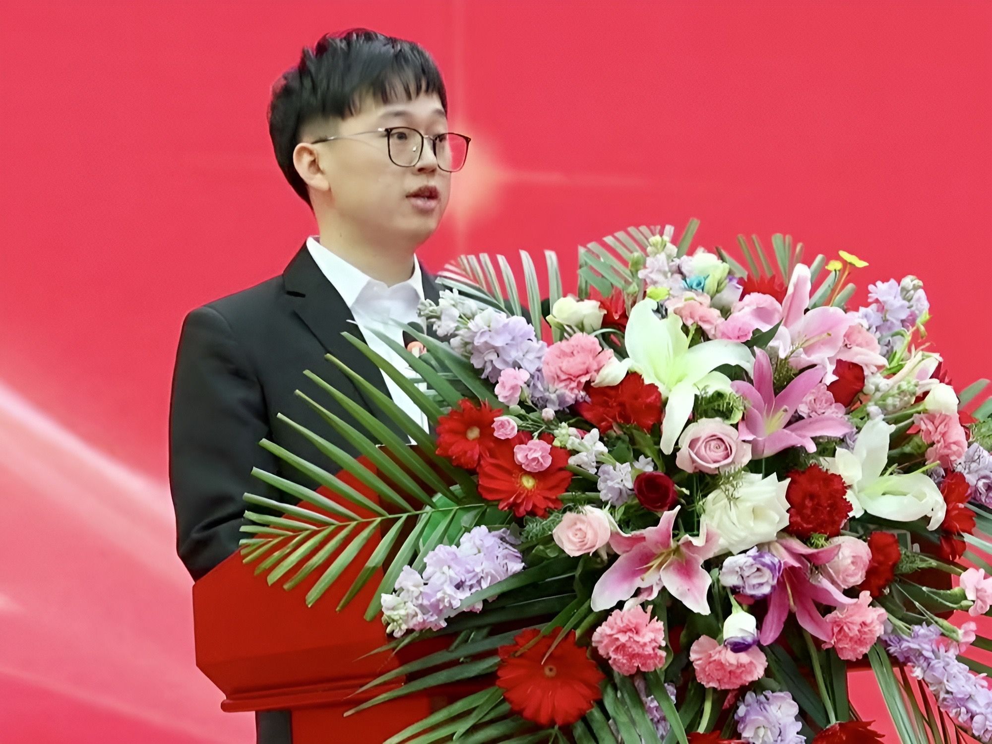 本科生代表、大学生年度人物获得者汤明宇对学校和老师们表示衷心的感谢和崇高的敬意,他总结了自己在学习上的心得体会,将学习经验与心路历程与同学们共勉,充分展现了学院优秀学子踔厉奋发的青春担当和朝气蓬勃的青春风采。