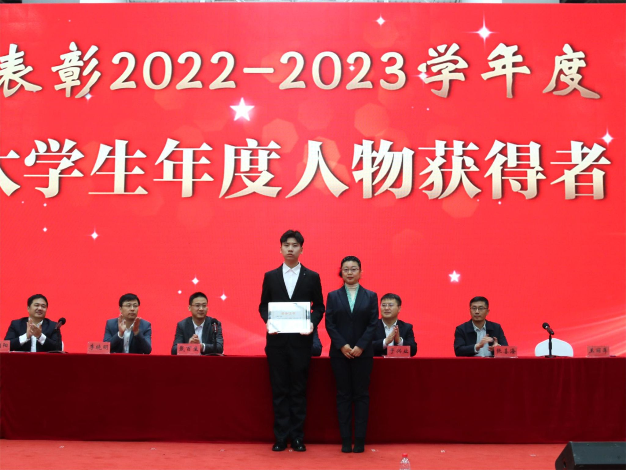 王丽萍为大学生年度人物获奖学生颁奖