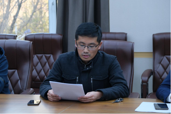 会议第六项,汪文斌宣读《太阳成集团tyc7111本科生论文指导教师、研究生导师关心关注毕业生工作制度》。