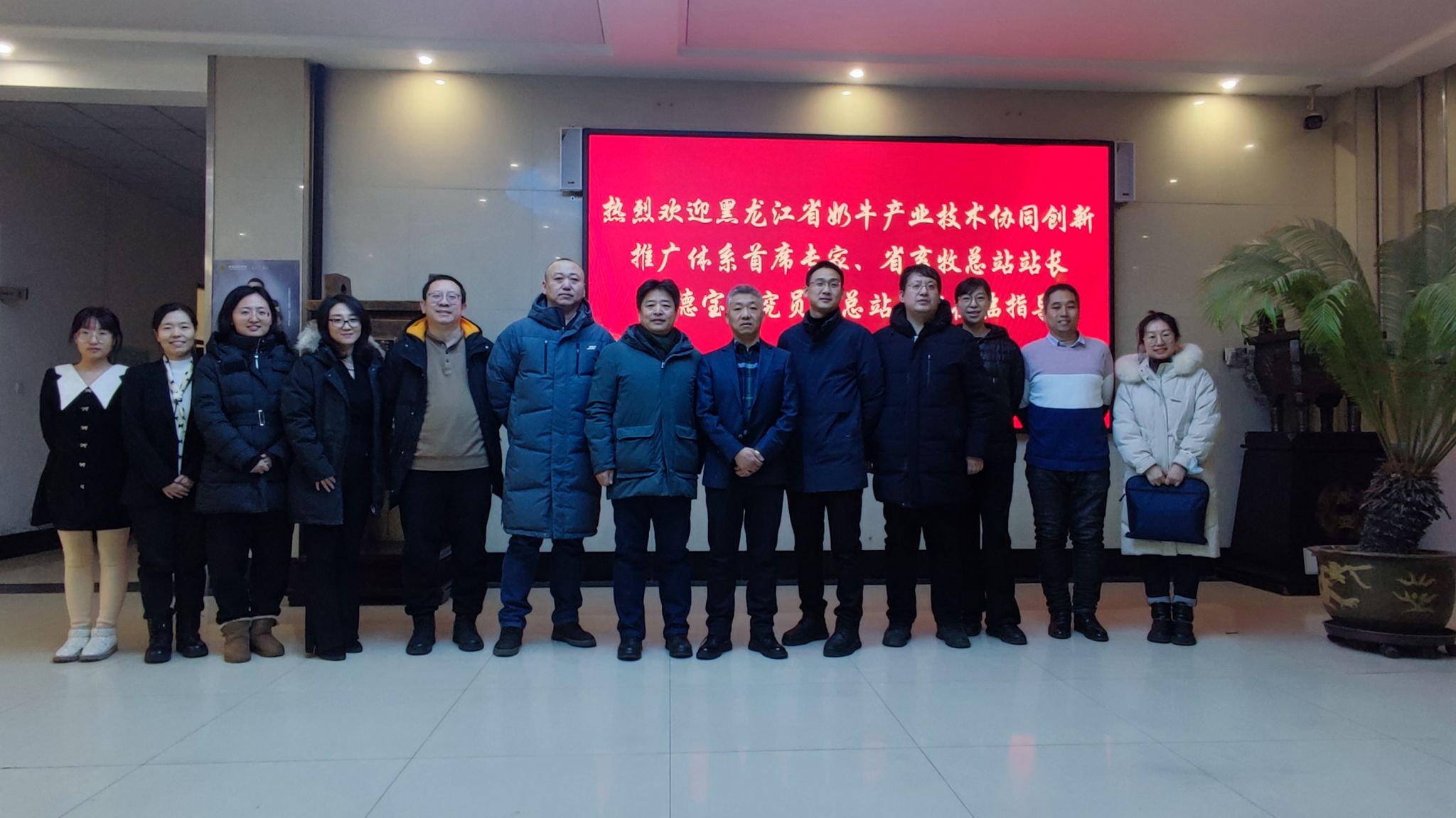 2024年1月31日,黑龙江省奶牛产业技术协同创新推广体系首席专家、省畜牧总站站长聂德宝研究员及郑伟、王鹏、孔庆芳、朱轶豪等总站专家莅临我校交流指导工作。太阳成集团tyc7111行政负责人戴百生、国家奶牛体系智能化养殖岗位科学家沈维政、黑龙江省奶牛产业技术协同创新推广体系主任专家魏晓莉、岗位专家高萌及智慧畜牧创新团队全体成员全程陪同。