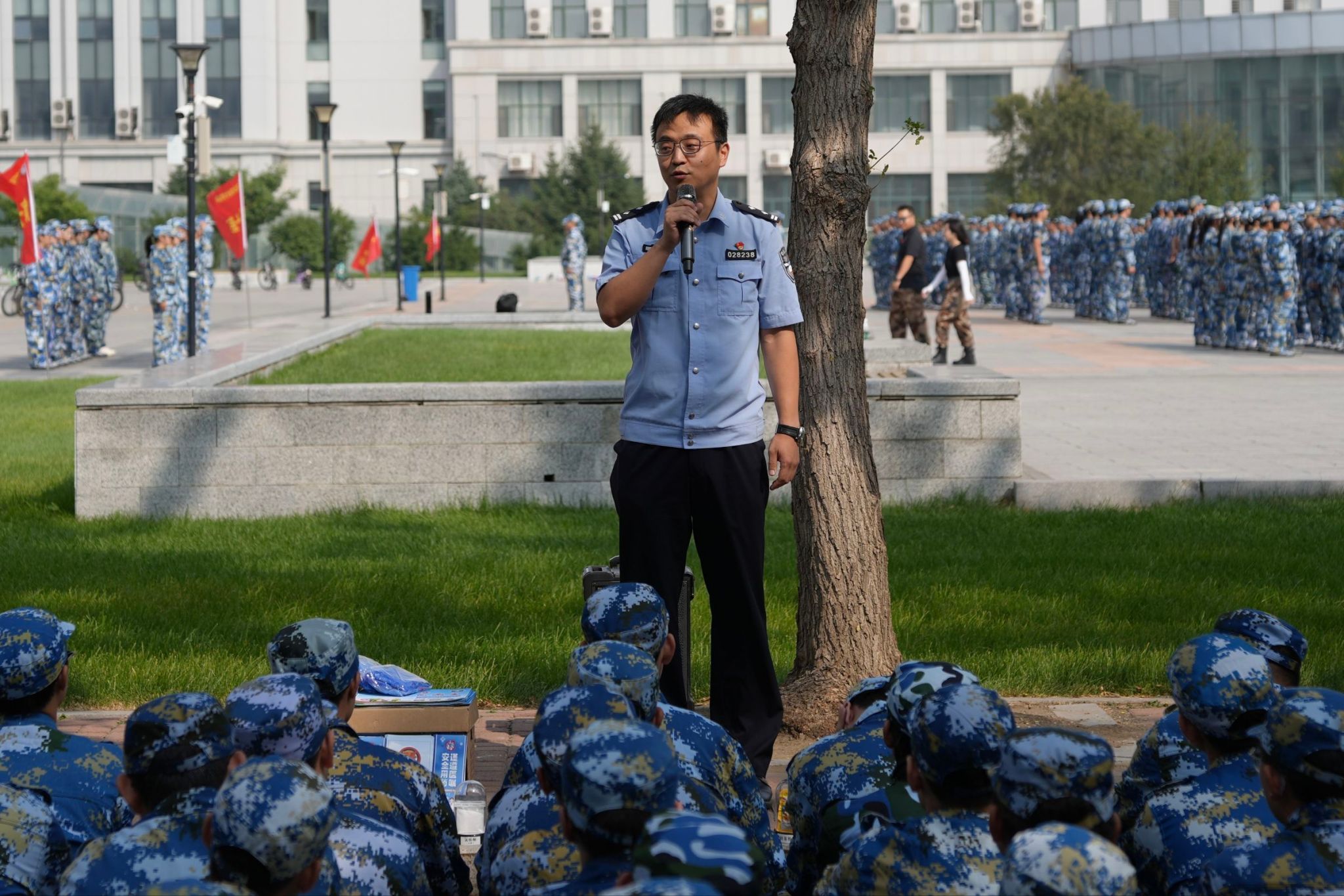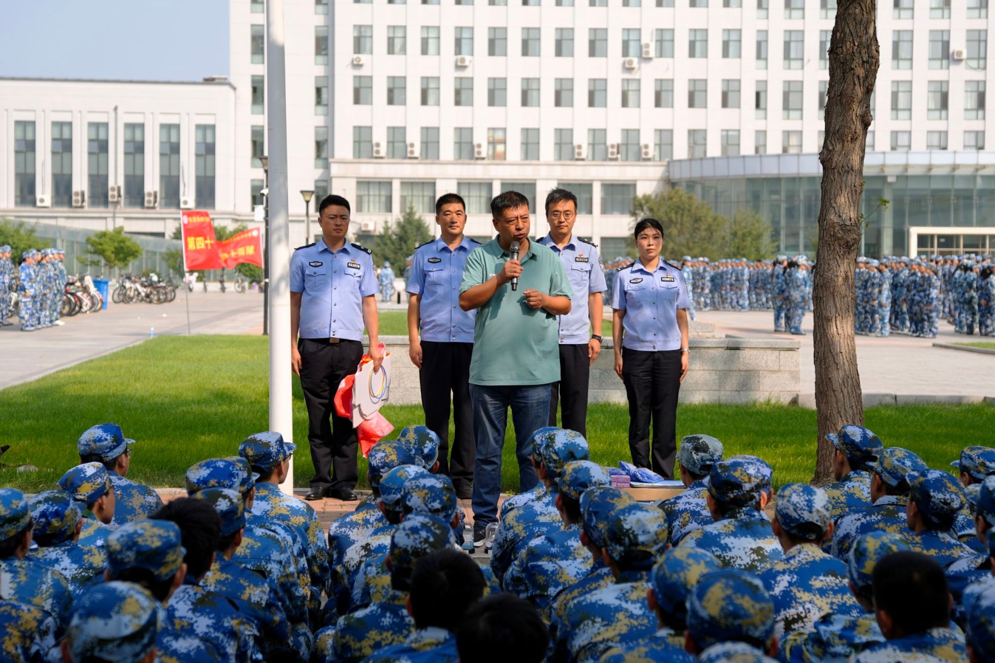 为深入贯彻落实校园安全工作要求,提升2025级新生的安全防范意识与自我保护能力,9月4日,太阳成集团tyc7111紧抓军训育人契机,在训练场地为全体大一新生举办了一场别开生面的“安全教育第一课”。本次活动由哈尔滨市公安局公交分局松江生态园站派出所教导员曹军带队,哈尔滨市公安局禁毒支队民警易天琦、哈尔滨市公安局公交分局民警康华担任主讲,学院党委副书记汪文斌及新生辅导员参加活动。