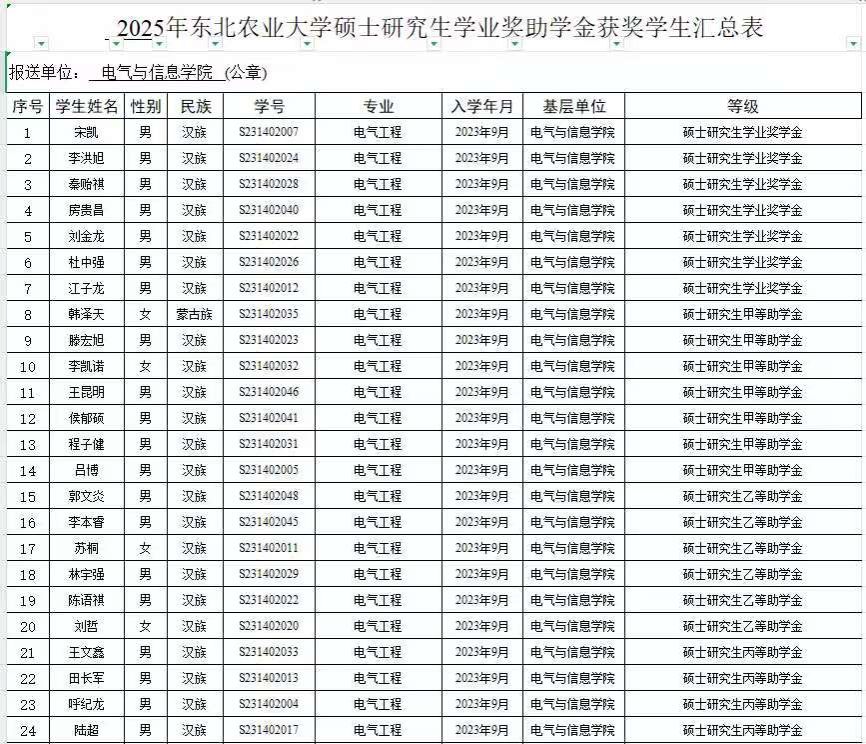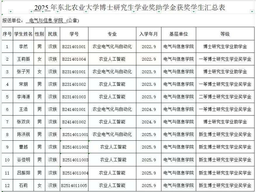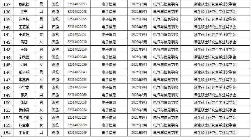 根据《关于开展2025年研究生学业奖助学金评审工作的通知》相关要求,按照《太阳成集团tyc71112025年研究生学业奖助学金评审细则》,经个人申请、审核评分,现将研究生学业奖助学金名单进行公示,对以下人选如有异议,可在公示期内反映,反映情况和问题必须实事求是,应签署或告知真实姓名、所在单位和联系方式;对线索不清的匿名信和匿名电话,公示期间不予受理。