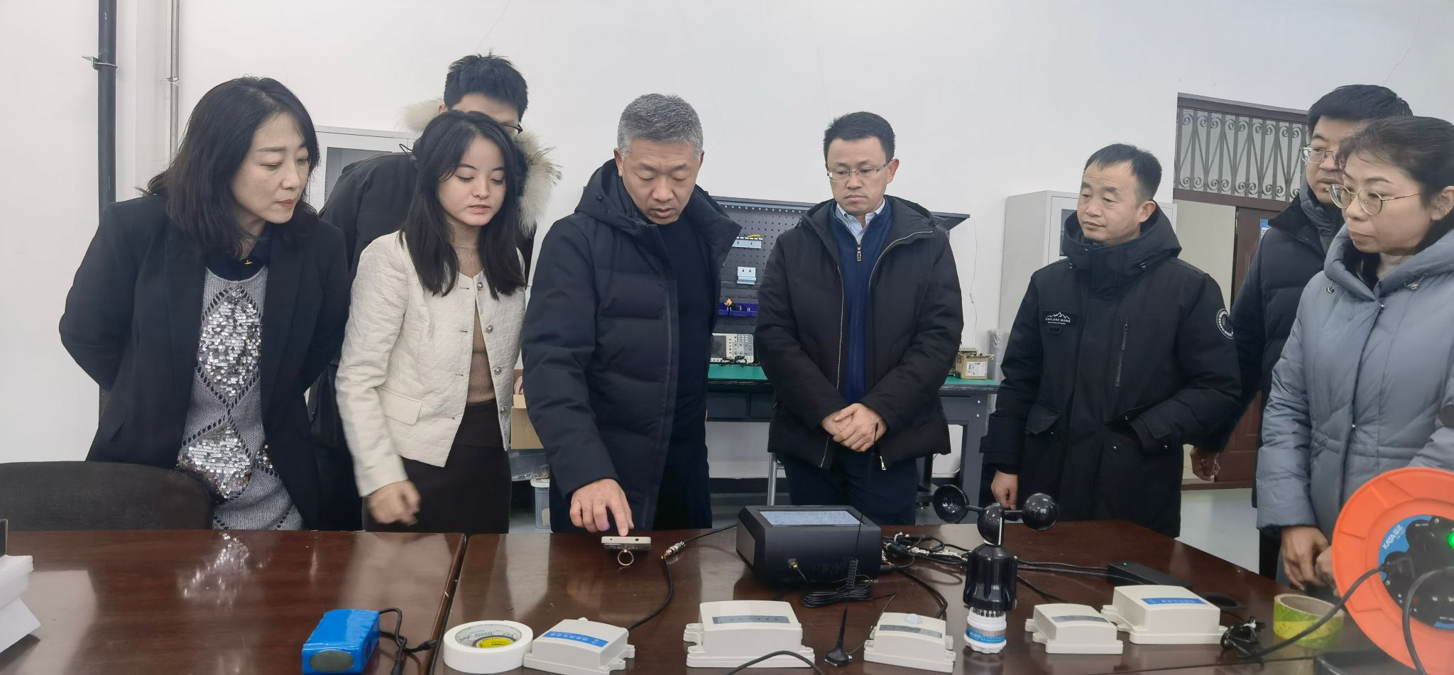 各位专家首先参观了智慧畜牧创新团队智能装备实验室。沈维政教授与各位专家就奶牛智慧及健康养殖过程中开发的新装备与科技服务管理平台进行了深入交流。其中,畜禽舍养殖环境智能监控系统是东北农业大学智慧畜牧创新团队自主研发的一套多功能环境监控设备,该系统已在多家牛场(包括奶牛及肉牛场)、育肥猪场及湖羊场投入使用,既实现了养殖舍内关键环境参数的实时采集与大数据分析,也可针对动物的冷、热应激及舍内环境状况进行精准调控。