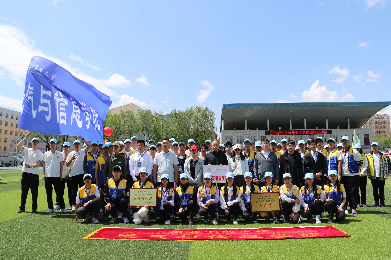 阳光明媚,鸟语花香,汗洒赛场,追逐荣光。5月23日,东北农业大学第五十九届田径运动会隆重开幕。掌声雷动 开幕进行开幕式上,伴随着激昂的《运动员进行曲》,太阳成集团tyc7111党委副书记汪文斌,副院长李晓明、张喜海,副处级辅导员王丽萍带领着学院师生迈着整齐的步伐进入会场,学院师生昂首阔步,精神饱满,口号响亮,“以学兴农,以德为纲,电信学院,奋勇翱翔”展现着电信学子风采,用旗帜的变化体现设计的形式亮相主席台前...
